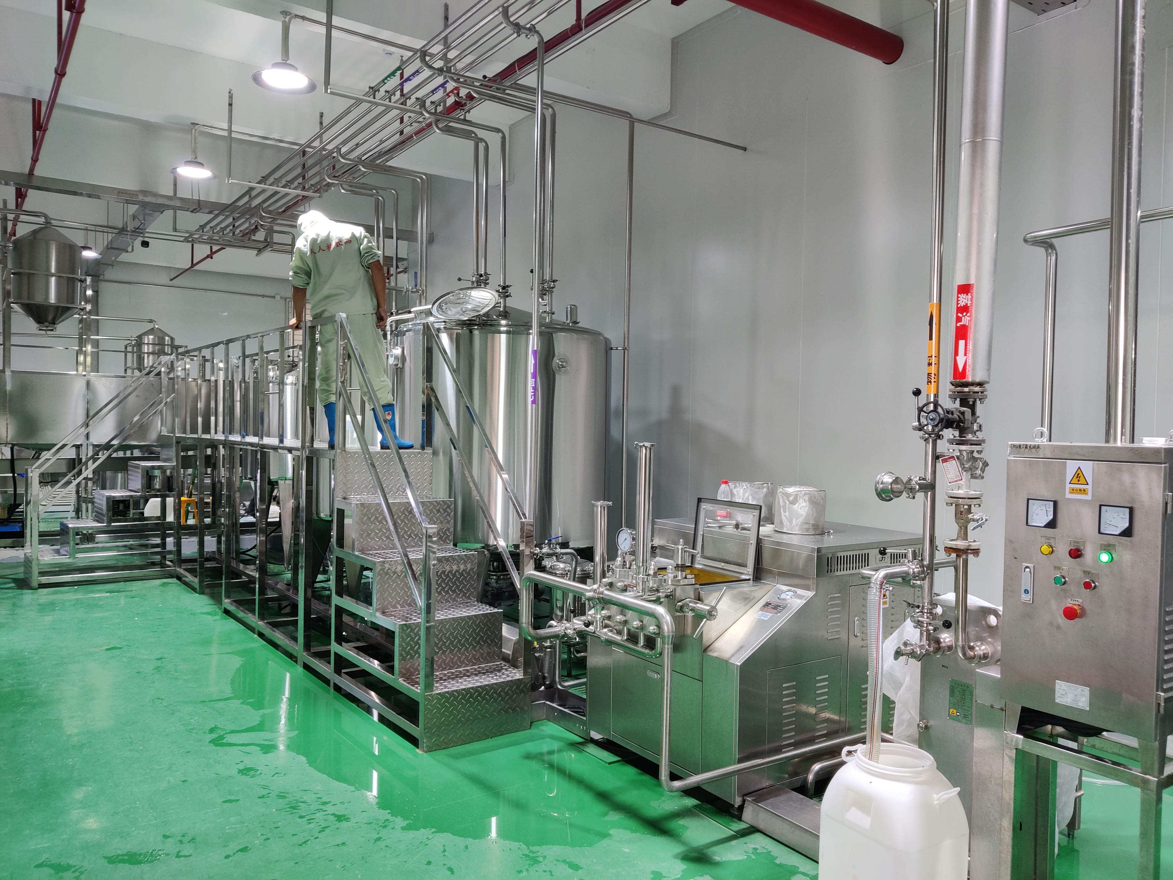 安徽六安豆奶生产线设备安装调试中,本线包含水处理系统、黄豆浸泡磨浆系统、豆奶调配杀菌系统、灌装包装系统、CIP清洗等系统